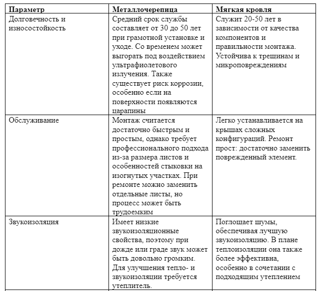 Мягкая кровля или металлочерепица имеют свои плюсы и минусы. Табличное сравнение по ключевым характеристикам поможет определить, какой материал лучше подойдет для конкретных условий строительства.